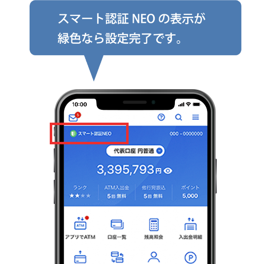 取引内容を確認して承認するスマート認証NEOは、不正送金などのさまざまな金融犯罪からお客さまの資産を守ることができるセキュリティの高いサービスです。